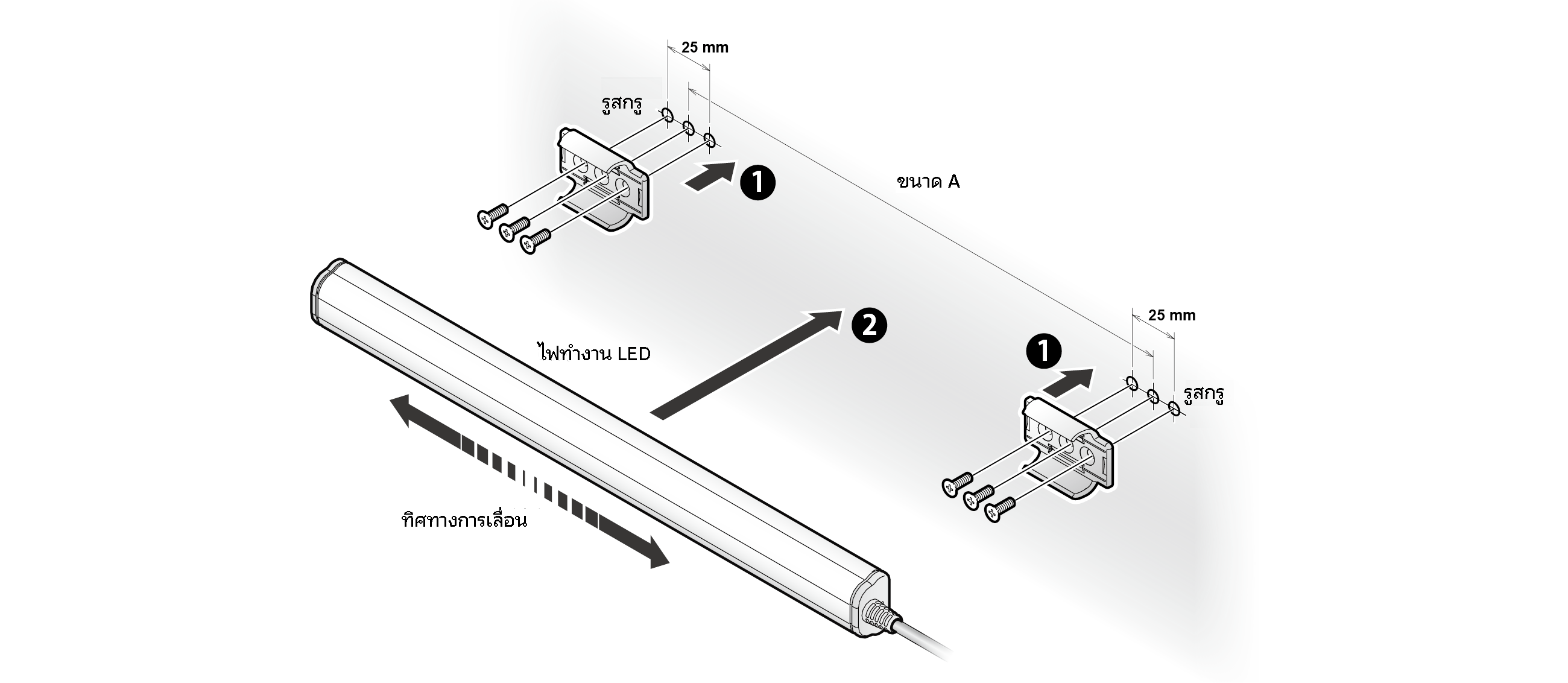 | ไฟส่องสว่าง LED | ระยะการติดตั้งที่แนะน | จำนวนขาแป้นยึด | |