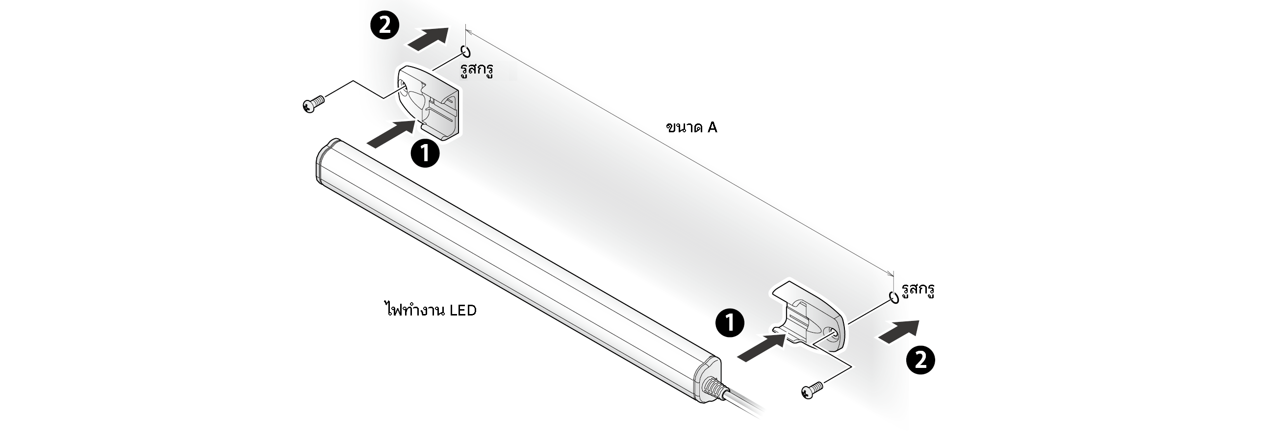 | ไฟส่องสว่าง LED | ระยะการติดตั้งที่แนะนำ | จำนวนขาแป้นยึด | |