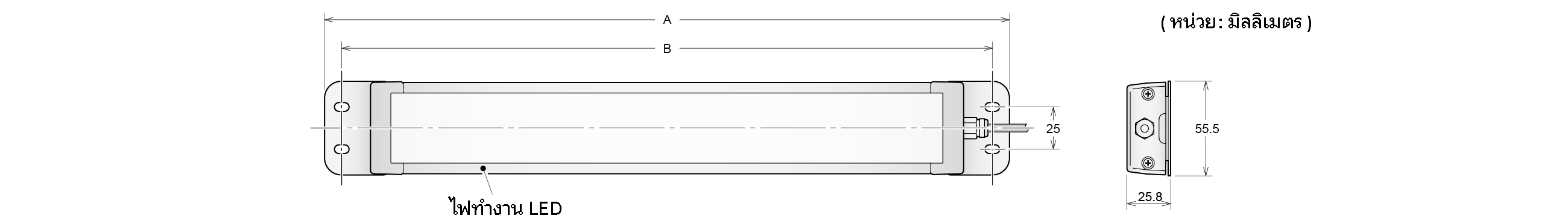 | ไฟส่องสว่าง LED | ความยาวรวม | ระยะการติดตั้งที่แนะนำ | จำนวนขาแป้นยึด |